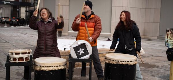 Today 60ish drummers brought attention and joy to the streets of downtown Minneapolis for a couple hours. We are tired, cold and crabby in the