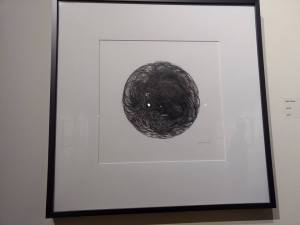 In contrast, hair circle is a piece that seems to make human become nature or art. It’s a picture of a swirling circle of hair. If I hadn’t read the name I might assume it was a delicate crocheted doily or dense, penciled Spirograph. I don’t know if I’m draw to it because of the art or the nature of it or because it reminds me of my three daughters.