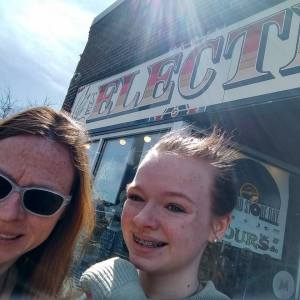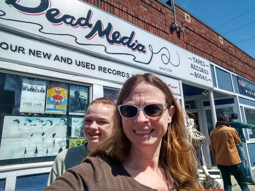 Music out in the back, a ping pong table, a spin wheel of prizes from Radio K and two floors of music. We bought 5 cassettes because Aine was so enthralled with them. Luckily my car plays tapes. SO now we have a homemade Led Zeppelin, Patty Smyth, David Bowie and some other hot 80s options. It was a good opportunity to learn about how tapes work and how they were a game changer for musicians in that it made it possible for a band to produce a piece of music to sell. That idea was pretty foreign to Aine.