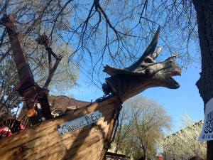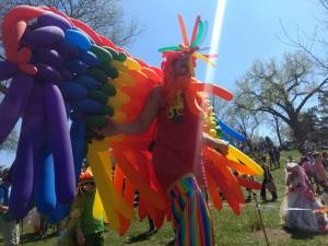 The Powderhorn Park version of the holiday is heavy on celebrating spring, socialism and opportunities for inclusive approaches to life and politics. The parade includes floats and puppets that carry the theme – as well as a host of supportive/supported groups. The Women’s March marched. And many candidates march. The festival includes music, food, and booths from various organizations. The ceremony happens on the shore of the lake, featuring characters from the parade, and culminates with the giant sun coming by boat to the shore.