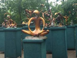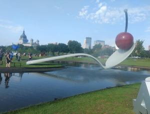 I got to take a tour through the Stone Arch Bridge Festival the next morning on a walk. It was so muggy, so hot and it rained for the whole 8 miles! Stone Arch include dozens – if not a hundred artists booths. A highlight was the robot art. And the free sample of brats at the Weber grill booth. And the area around the Stone Arch Bridge is gorgeous.