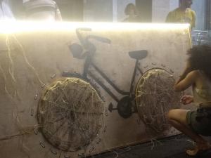 Northern Spark is the all night arts festival in Minneapolis. Except this year it was only from 9 pm to 2 am but it went on for two nights. I brought Aine and a friend – then we met up with a friend of mine there. The festival was set up in three parts of downtown Minneapolis: the public library, near the stadium and on Nicollet Ave. Different artists set up stations – most are interactive. And you can meander from one to the next.