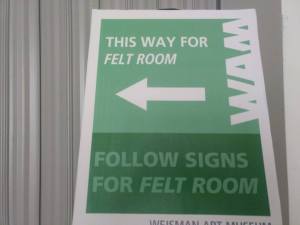 Felt room is an immersive performance piece by BodyCartography at the Weisman. (I wrote about the artists’ talk earlier.) It is performed in a sealed room. You sit, stand, lounge where you want; the dancers work around and with you. The performance is three hours long but there’s an open door policy.