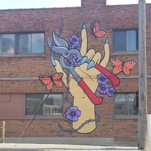 Martzia Thometz Mural at the Universe Buildings, 670 Vandalia Street. These hands are across from the Dubliner pub. It’s an area where a lot of laborers work. I love that the hands are feminine and hard working.