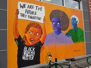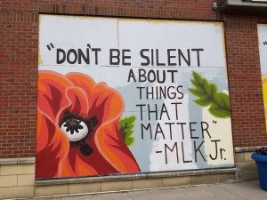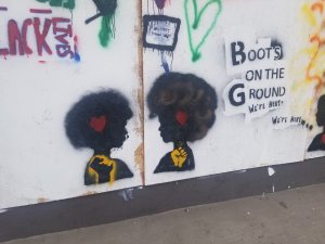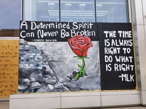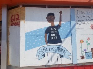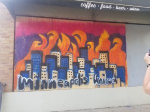 People are serious, but not numbingly anxious. There’s an undercurrent of anger for what has happened and a growing recognition that this has been happening for centuries. But there’s also a glimmer of hope that we might see real change. The involvement and leadership of youth is inspirational. There is respect and appreciation for all ages. Today is a day to celebrate and so Monica and I sent the afternoon checking out murals throughout the Cities.
