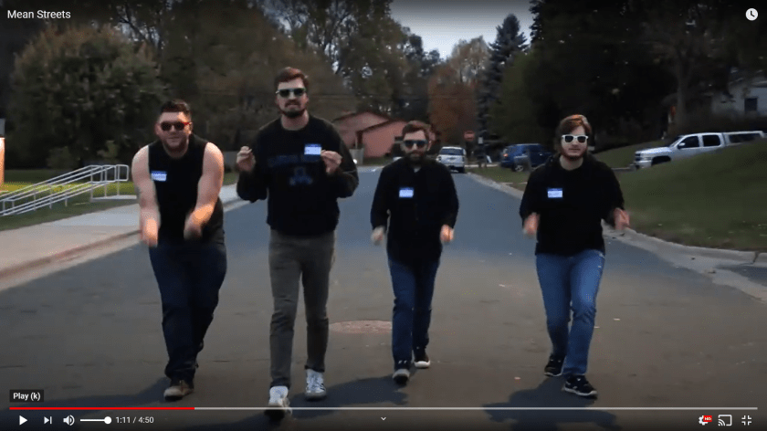 It’s a great nod to the story telling video so the 1980s. The songs are a string-heavy and danceable beat reminiscent of the 1980s too.