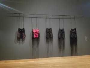 First and foremost, the creepy rabbit with human hands half body hung on the wall by Kelly Connole. Friends will know that I have a fear of rabbits since they used to sneak into my old house. Some we found some running around; some we found later. And I say “some” I really mean three but it was a nightmare. So I love/hate the creepy rabbit. I have stalked the artist; she’s at Carleton and I will be looking for an opportunity to see more of her work. I love art that sets you on a scavenger hunt.