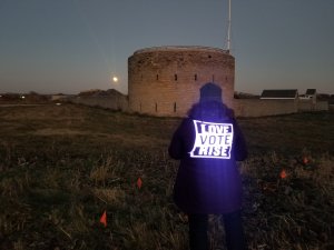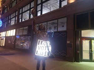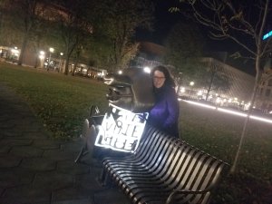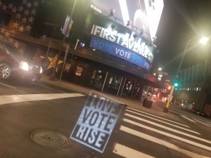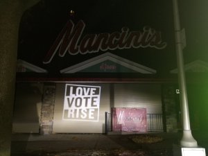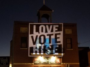 The sad thing is being out on a Friday night and seeing no one around. The happy thing is having an excuse to run all around town in a COVID-friendly manner (masked and distanced) and promote the vote. I think we’re all very nervous about what’s happening with the vote. Most of us have voted – and darned good thing with all of the changes happening mid-play here. (For example, your ballot must be received by November 3. Worried? Get more info from the Secretary of State.) But there are people we can still reach and it feels good to do something!!