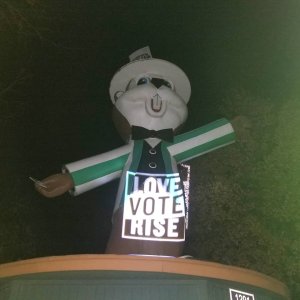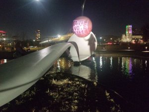 We were getting cold and tired – more in body than mind. So we headed home but on the way saw what needed to be out “last call” the Schmidt Brewing sign. Such a fun night; we were lucky to participate. In the same way we should feel lucky to vote – if that’s what gets us out to the polls. Voting is much easier than a night of art installation – and is so much more important.