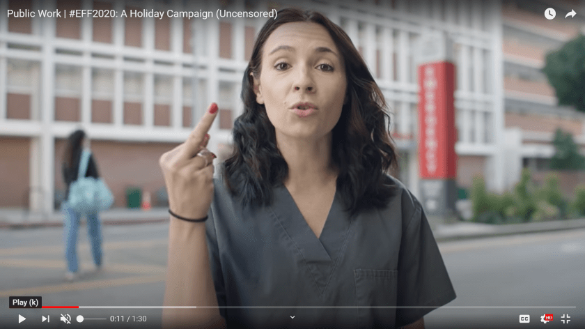 To make it as big and loud as can be, we’ve created the video to remind people (just in case they forgot) how EFF’d up this year was, along with an opportunity to text 🖕to 1-877-EFF-THIS (1-877-333-8447) to donate $5 to The Mental Health Coalition. For our friends in Canada wishing to send their support to a Canada-specific entity, we encourage making a donation to the Black Health Alliance. Let’s start 2021 off right. …