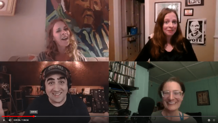 Back Catalog Listening Party started a week after the pandemic hit Minnesota and has been going strong ever since. The show is live (and archived); people can join via YouTube – and by join I means watch and post questions. They invite an artist, who picks out an album and songs from the album. They chat then collectively listen to the album. It’s so interesting to watch musicians listen to their own work.
