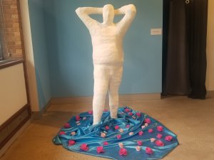 Two of the artists celebrated the body. Kyle Bredain showed body casts of larger gay men, which as I learned, resembled his shape. It was an opportunity for him to learn to own and love his own body without judgement. I loved the intricate felt flowers surrounding the bodies. They lift the model to god-like status. Alejandro Junyao Zhang recreated a nightclub, inspired by queer club scene of Shanghai. It was an immersive experience. When you walk in they turn on the club music and then there was a video of a scantily dressed man dancing. His face was went from serious to joy once he started dancing. There should be a way to bottle the swagger and sass of he embodies.