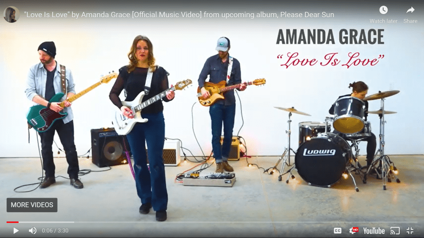 We are pleased to premiere Love Is Love by Amanda Grace from her upcoming album Please Dear Sun. The video includes Amanda and her band playing music in a white room with balloons. It’s joyous!