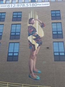 Here are some of the new, or at least new-to-me murals we saw today, starting with two murals that are a little set apart near Can Can Wonderland on Prior Ave. The first is from Eric Garcia – please note the #StopLine3 on the t-shirt. Having spent some time trying to Stop Line 3 myself, I love the nod and I hope folks take that in as they look at it. The next is by Wunder and Ryoe; the work makes me think of a beautiful junk drawer full of utility and possibilities and maybe a little chaos.