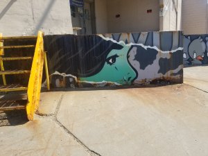 The next are two celebrate the location. The first is a huge, multi-storied mural that is somehow hidden, nod to the people and the industry of the area It’s modern and retro by Wen Winship. The second is from Witt Siasoco; it’s a little bit hidden on the south side of University right off the Westgate Train Stop. I choose to view this as the resilience of community to flourish like a flower in an industrial park.