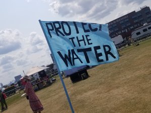 Yesterday was a day to remember but it was also a day to celebrate and appreciate the work of the frontline warriors and Water Protectors. We gathered at the Bayfront Festival Park in Duluth Minnesota. It was hot with the occasional welcome breeze from Lake Superior. There were vendors, booths and food. The longest line all day long was for the water – ironically or not.