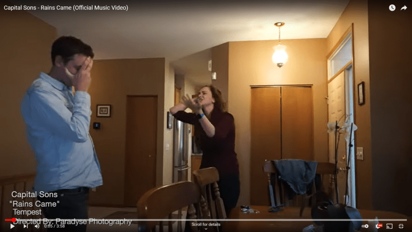 The EP is a collection of personal stories leading to a coming of age and the story behind Rains Came is inherently sad with lines such as, “You took off when the rains came and left me standing in the cold.” The video starts with a domestic dispute and a woman walking out the door. The action cuts between the band playing and the fall out experienced by the character played by Karl Obermeyer. Eventually this leads to Karl walking out of the rainy street and onto the rainy stage. It’s a nice visual of how real life stories seep into music and music is an outlet to overcome adversity.
