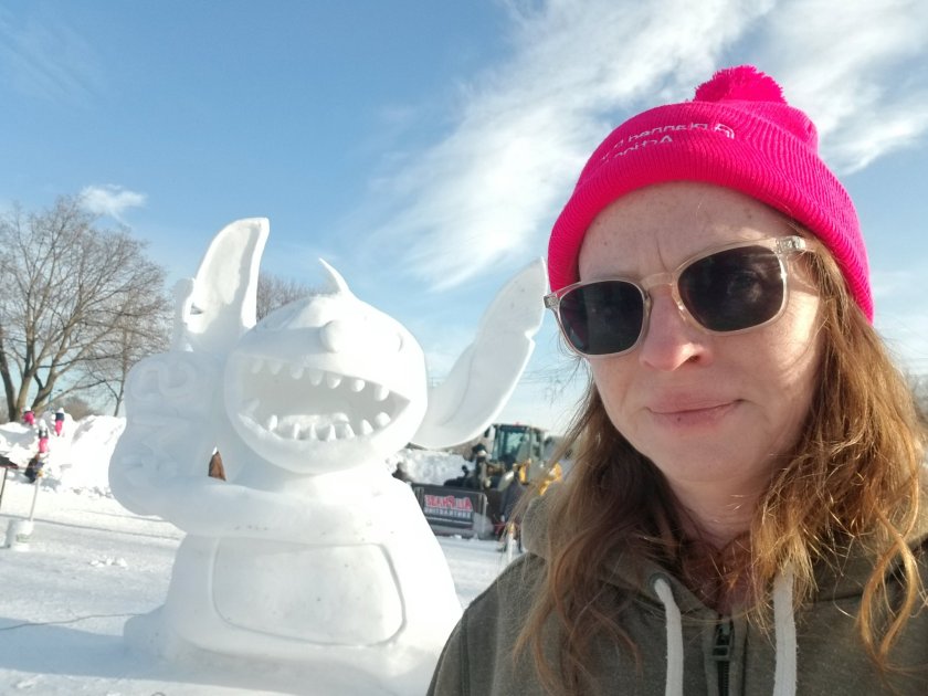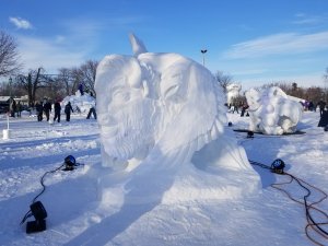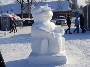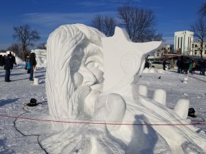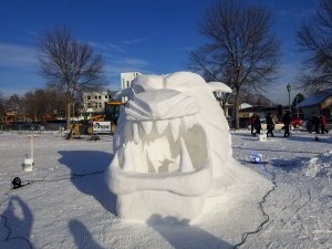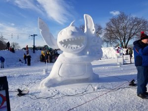 Today I checked out the snow sculptures at the State Fair Campgrounds. It’s open 9am to 9pm. They have a number of big sculptures, a giant maze and a huge mound of snow, perfect for climbing and sledding.