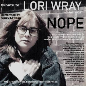 Cindy Lawson has recorded Nope, a song written by Lori Wray. It is a touching tribute and fundraiser for Dissonance, an organization that examines the intersection of creativity and wellbeing to promote awareness and support for mental health, addiction, and compassion in the arts. You can access (and buy) it on Bandcamp.