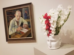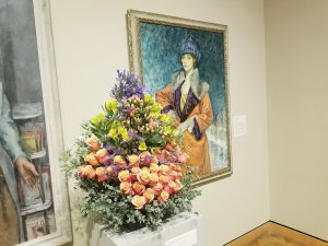 Art in Bloom pairs 100 artists and florists with artworks to use an inspiration for flower arrangements. It’s always interesting to see what happens. Some florists are very true to the subject either attempting to replicate the work or extending the artwork in some way, like continuing a garden or sky started in the work of art. Some capture a small element of the original artwork and go with it. Some seem to bounce in another direction creating something that captures the essence without replication.