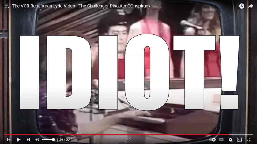 The song is about the VCR repairman bemoaning the life he was promised and blaming everyone around him for selling him out. There is an audience that needs to see this and The CD Conspiracy has chosen a language they just might understand! The rest of us can just enjoy the music and the humor.