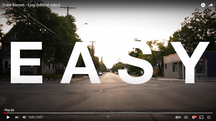 Gabe’s voice sounds amazing in the video with a little bit of a Lou Reed vibe. As you might expect, the sound is easy. It’s catchy and with a pleasant build and dénouement. The video is a fun look at Gabe running through Northeast Minneapolis. In so many ways, Northeast looks like any other Midwestern town but when you know it, it’s fun to see him run past familiar places with a nod to the musician playing outside the 331 Club. It makes the point that we’re all easy to find in our own environment.