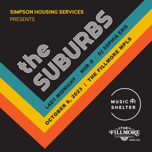Music 4 Shelter, a concert benefit for nonprofit Simpson Housing Services, returns to The Fillmore Minneapolis on October 6. Legendary Minnesota band The Suburbs headline the show with award-winning and upcoming artists Nur-D, Lady Midnight, and DJ Sophia Eris. Comedian, artist, and emcee Miss Shannan will host.