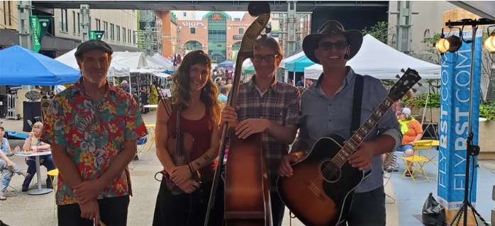 As time progressed I was writing more music and the play-only cover scene just kind of grew less attractive for me. I was helping to raise our young family and I dug in to writing and recording more and didn’t play out much at all. When my kids began to spend more time with their friends and were able to drive more and more, I began to play music out some and I realized that I was writing most of my music on acoustic guitar. So it was a natural progression to build a band into what became Root River Jam. Which is an acoustic instrumentation band for the most part. Although that varies sometimes with a few fill in players. I advertised on Craigslist of all places …. lol. And I met Blake, the upright bass player, who is a founding member of RRJ. And I met our first drummer , Sean, on Craigslist as well. Knew someone who knew a fiddle player and that fell into place. As with most groups we have changed some of our line up. One of my main goals for this “new band” “new approach” I was building, was to have plenty of improv and trading off with leadwork. I guess you could say going around the circle with all the players. We do actually have our drummers take quite a few as well. With that said, having a “Jam band” is having alot of improv within your context of songs. Most jam bands have a basic framework for the songs they are playing. And work within and around that framework to improvise to them. Some of the songs lend themselves more to that cover or original. I don’t very often just write a song just to “Jam” I have passions and mood driving my art like most artists do. We’ll bring the jam if there is space and sometime we wiggle around to make new space. Finding new space is part of the fun and challenge of playing live music.
