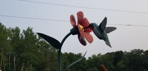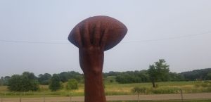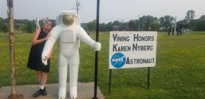 The artist, Ken Nyberg, was born and raised in the area. His art is made from scrap metal, old lawn mower blade and other recycled materials. One of his first big steps (pun intended) was The Big Foot, which is installed off a highway in town. Apparently, we kept this a big secret to everyone, included his wife for two years. Now, it’s sort of a Vining mascot. There’s also a work in honor of his astronaut daughter Karen Nyberg!