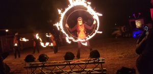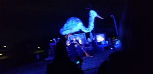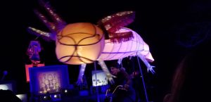 The puppets and performers are the headliners for sure. They are at times charming and scary. We were in the front row, so we could see everything. The makeup on the fire dancers was exquisite. One advantage of getting there early enough to get in the front row is to see the detail is it feels like a bonus. But I’ve sat in the back before too and sitting there you don’t miss it because then you can take in the scale of the production. There’s a hint at anthropomorphism. In this show it was the fireflies. They have such human ethos, clearly helping us realize that we’re all connected. It’s amazing to see how the puppeteers can give the same “life” into the larger puppets as well. They way their joints move when they walk, the creepy frog tongue.