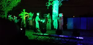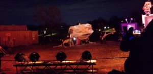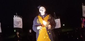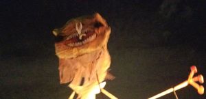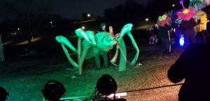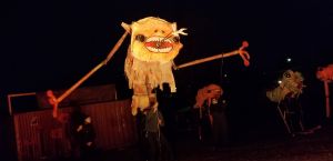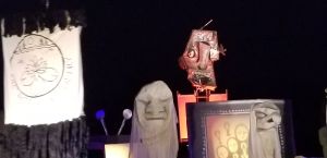 Every year, I leave the BareBones outdoor puppet extravaganza saying, “remind me next year to dress warm” and yet every year I underdress. But even with toes freezing, it is worth it! BareBones has been doing Halloween shows outdoors for 31 years. It is large scale puppetry performing an interpretation of Halloween as the time when past and present intermingle. BareBones Production is a nonprofit; more than 200 volunteers helped with the show. It’s performance and community. It’s great for all ages. There are lessons to be learned but that doesn’t overshadow the performance element.