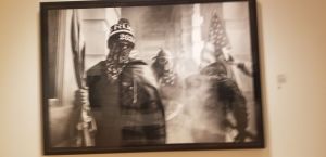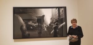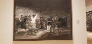 Today we got distracted by Robert Longo’s The Acceleration of History. He does charcoal drawings that are as realistic as photographs of well-known works of war art (such as The Third of May by Franscisco Goya) and more recent scenes of civic unrest or atrocities, such as the insurrection of January 6. They are eerie and thought provoking. His work included a video (Sea of Change)of a coastline with waves crashing to the shore. The sound is mesmerizing and familiar until you realize, the soundtrack is made up of earthquakes, bombs crashing, and buildings collapsing.