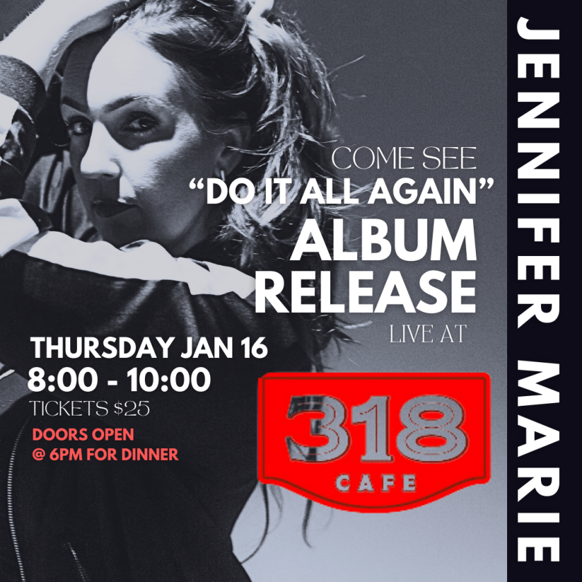 Need a sultry song and video to keep you warm this week? Do It Again by Jennifer Marie is the solution. Her voice is strong and beseeching at the same time. You can hear the emotion in the song. It is off her new album, also entitled Do It All Again. You can see her sing it live at the Album release at 318 Café on January 16, 2025.
