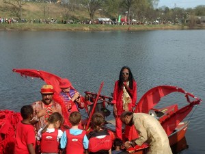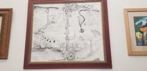 Munir Kahar is a friend, and I was glad to catch the last night of his exhibit at Mirror Lab. Keep an eye out for his name for art, music, performance – whatever he does is going to be good. His art speaks to an Imaginary Voyage. Munir is originally from Indonesia, I can see the influence, although the artist that comes up most when I look at his work is Catalonia’s Joan Miro. Fantasy and cartoon bring together environments and nature that separated in the real world. But what I really love is the old picture I have of Munir at the Minneapolis May Day Festival, below next to his work called Dragon Boat.
