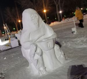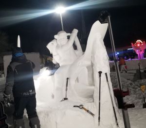 It’s Winter Carnival Time and we caught the snow sculptures as they were being built at the Vulcan Snow Park on the Minnesota State Fairgrounds. It was a quick look because it was only getting colder, but the sculptures are amazing. Some art charming, others are clever and some majestic. To see the folks as they are putting hours into an art form that will only last a few weeks – maybe less with 40 degrees expected in three days – puts time and effort into perspective. It will be fun to visit again tomorrow or Monday to see the finished products.
