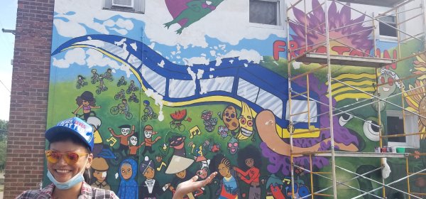 This evening Monica Nilsson and I stopped by Frogtown Community Mural’s Community Mural Pop-Up on Lafond and Dale. It is the site of a mural